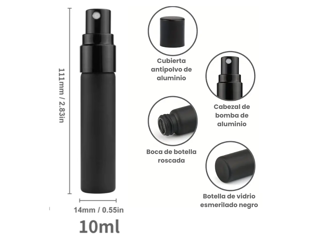 Nuestro decant exclusivo es el envase perfecto para tu perfume o elixir concentrado. Diseñado para la máxima portabilidad y protección, sus características clave son: